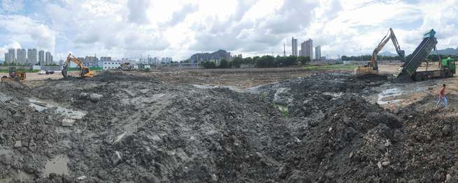 工程特點:對渣土采用ALLU攪拌斗加干粉固化劑進行硬化處理技術,最終處理渣土硬化量近5萬立方米。
